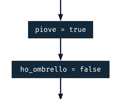 Vediamo ora come convertire i blocchi FlowRun in istruzioni Python. Un algoritmo in FlowRun può essere riscritto in Python semplicemente traducendo blocco per blocco.