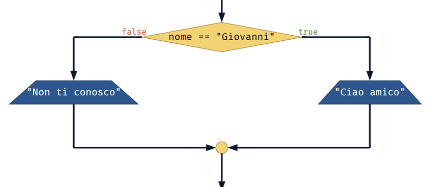In questo esempio controlliamo se quello che scrive l’utente è uguale (==) alla lettera S maiuscola.
