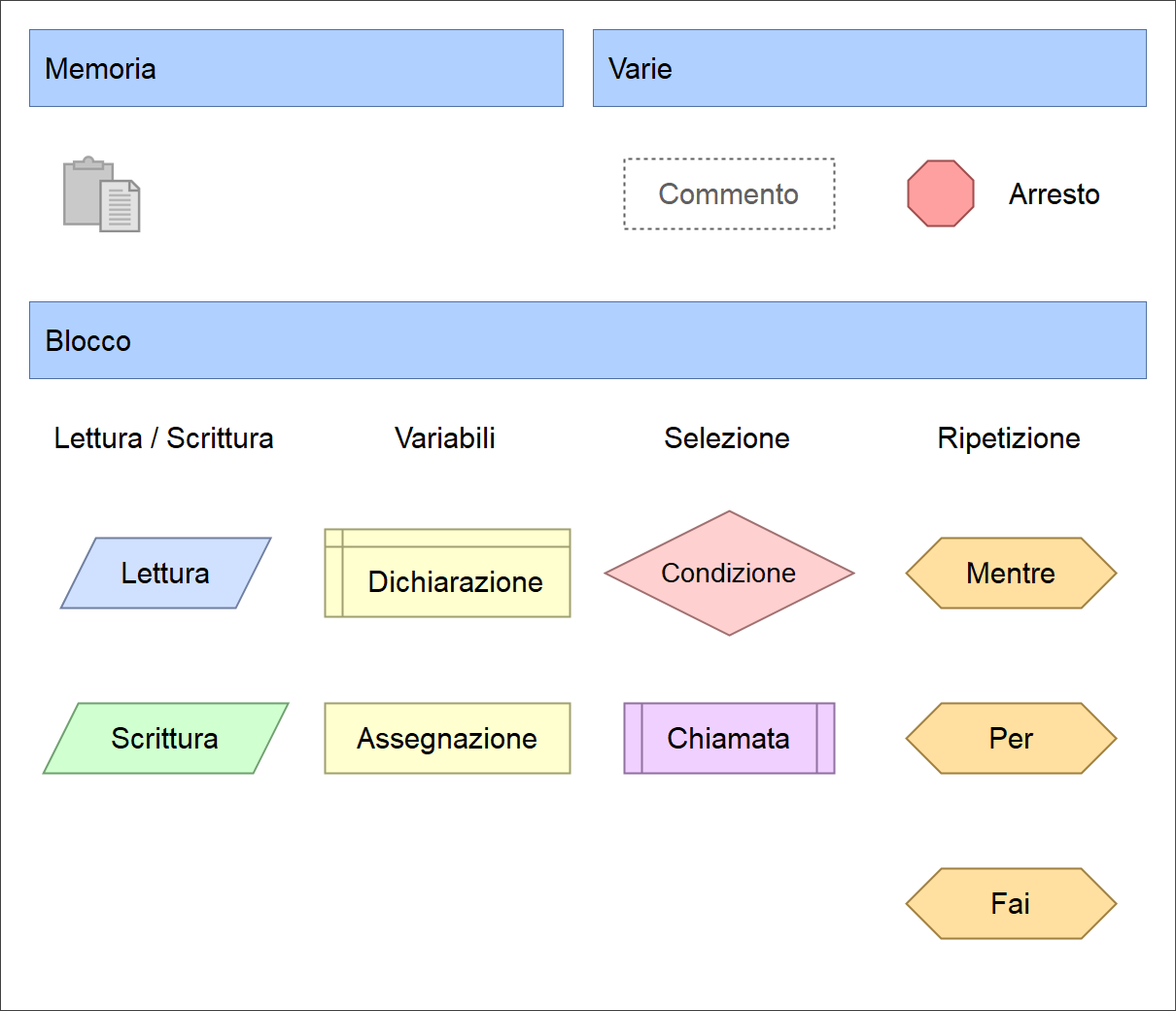 I blocchi Lettura e Scrittura chiedono all’utente (lettura) o comunicano all’utente (scrittura) il valore di una variabile.
